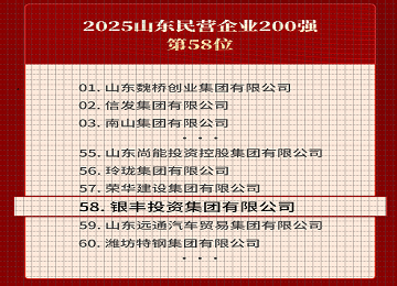 銀豐集團(tuán)再獲佳績(jī)!入圍2025山東民營(yíng)企業(yè)百?gòu)?qiáng)系列三大權(quán)威榜單